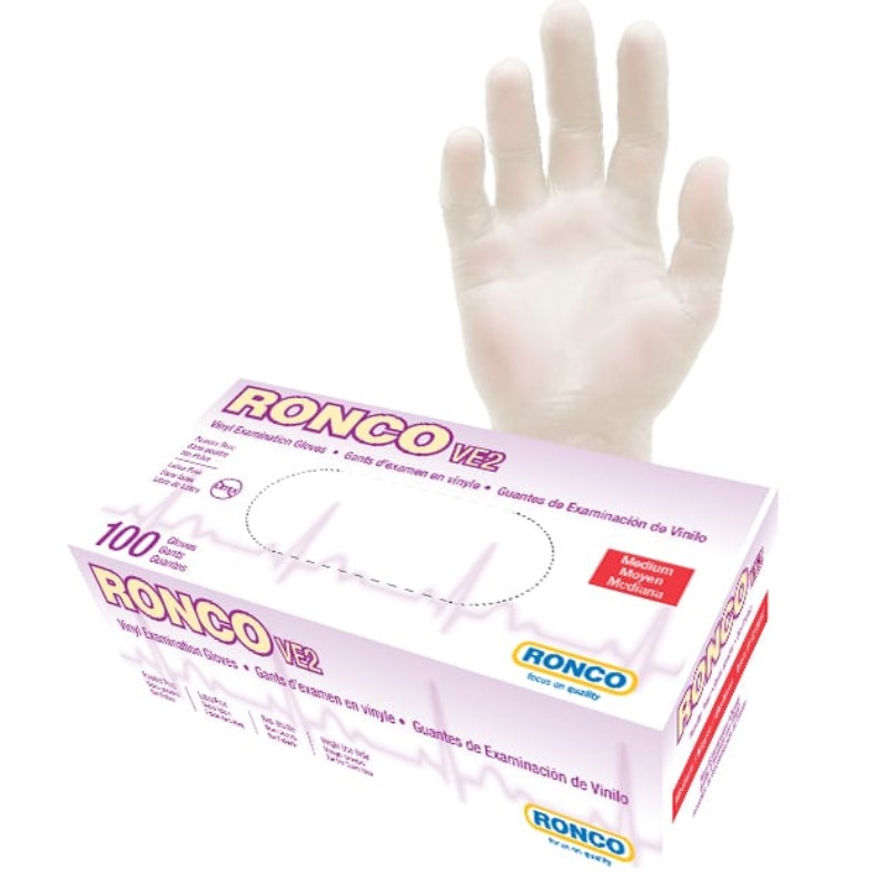 RONCO VE2 Vinyl Clear Examination Glove Powder Free Medium 100x10