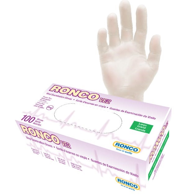RONCO VE2 Vinyl Clear Examination Glove Powder Free Large 100x10