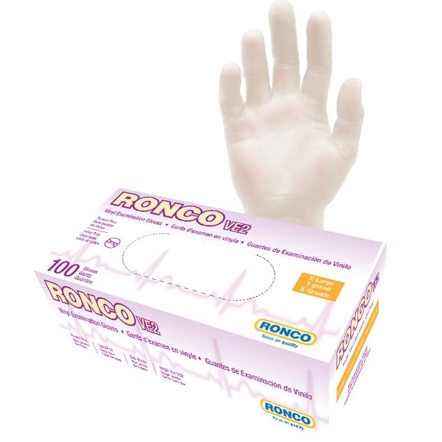 RONCO VE2 Vinyl Clear Examination Glove Powder Free X-Large 100x10