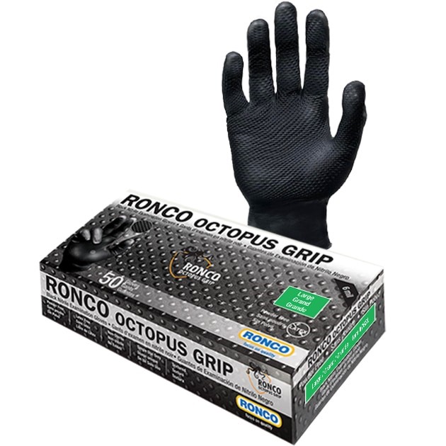 Ronco Octopus Grip 6mil Nitrile Black Examination Glove Powder Free Large 50x10