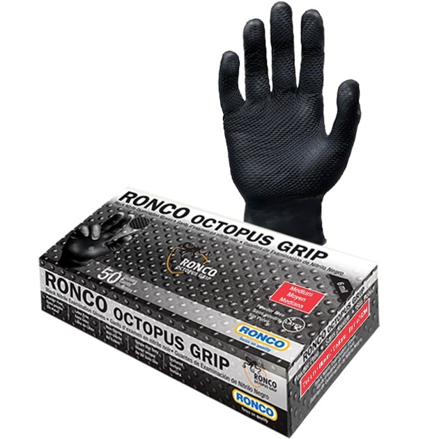 Ronco Octopus Grip 6mil Nitrile Black Examination Glove Powder Free Medium 50x10