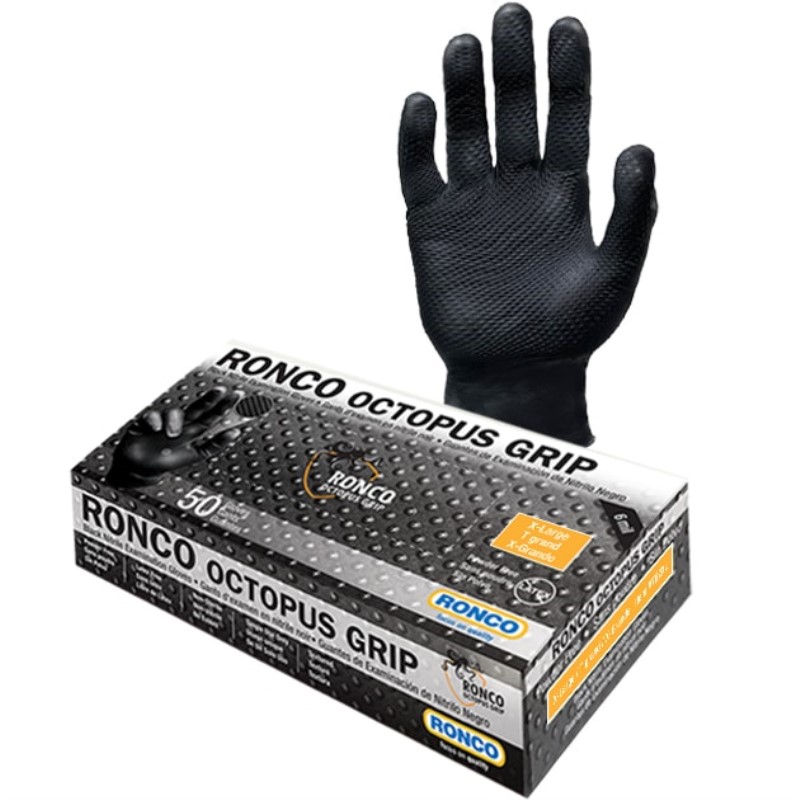 Ronco Octopus Grip 6mil Nitrile Black Examination Glove Powder Free X-Large 50x10