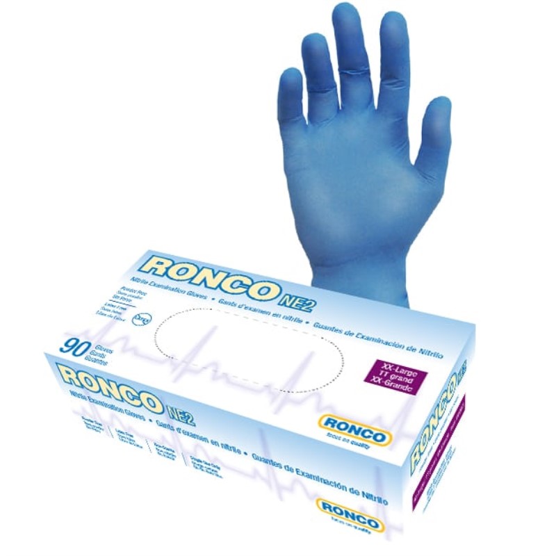 Ronco NE2 Nitrile Blue Examination Glove Powder Free XX-Large 90x10