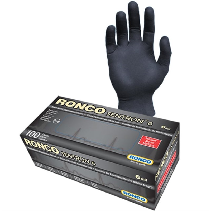 Sentron6 Black Nitrile Examination Glove Powder Free Medium 100x10