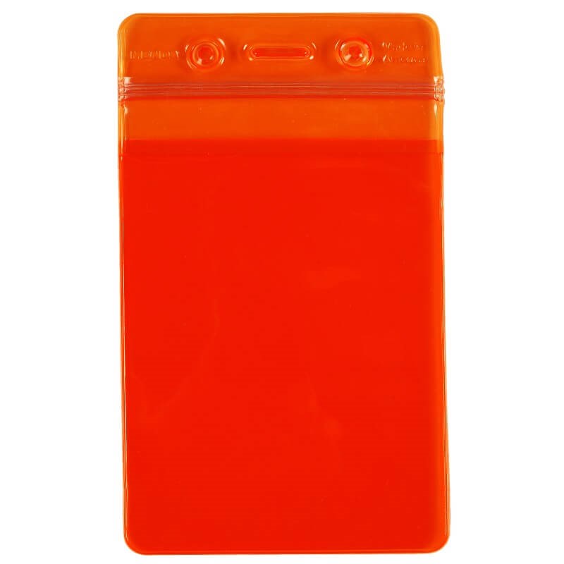 BADGE HOLDER, ORANGE, ZIPPER, VERTICAL FORMAT, 3'' x 5'' OD