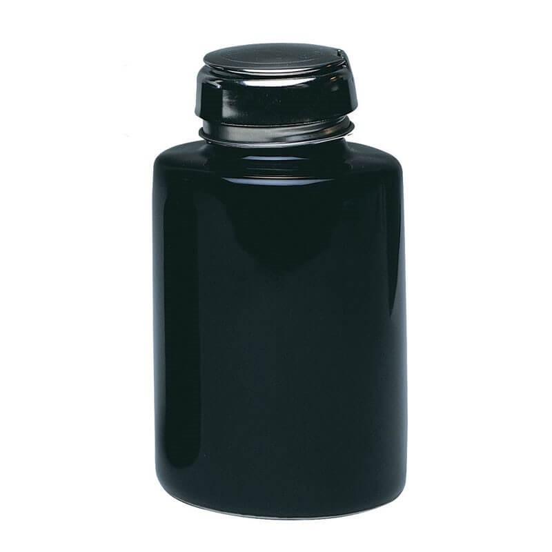 Ceramic bottles in either black or white are featured in Menda's Tuxedo Collection. The bottles are available in both One-Touch and Pure-Touch pumps. The Pure-Touch pump effectively prevents waste, eliminates contamination, and reduces fumes. Pumps are Made in United States of America. Bottles are made and/or assembled in the United States of America from parts made in United States of America, Japan, Taiwan, or the UK.