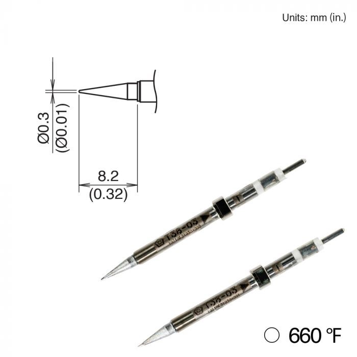 HAKKO TIP,CONICAL,2PK,R0.15 x 8.2mm,IH,350?/660?F,FX-1003