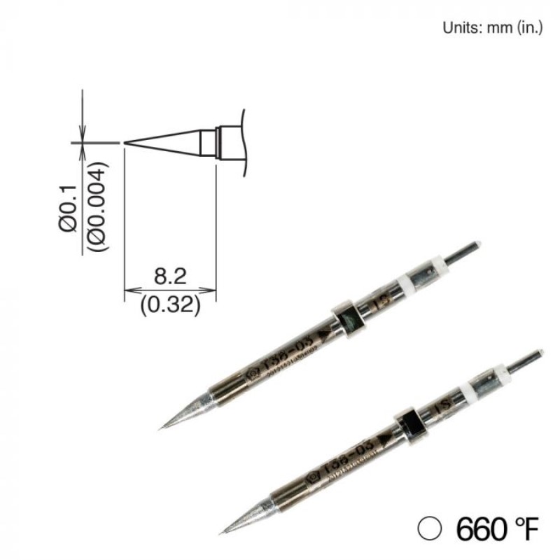 HAKKO TIP,CONICAL,2PK,R0.05 x 8.2mm,IH,350?/660?F,FX-1003