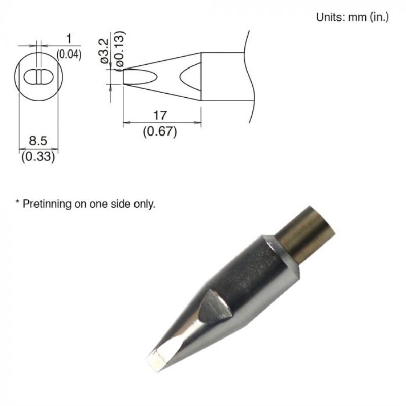HAKKO TIP,CHISEL,3.2 x 17mm,TINNED FACE ONLY,FU-6001/6002