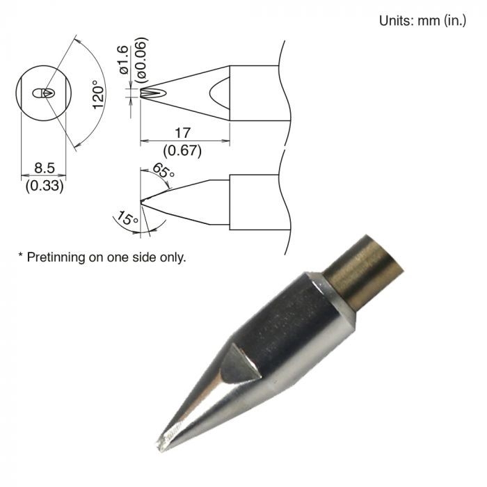 TIP,CHISEL,V-GROOVE,1.6 x 17mm,TINNED GROOVE FACE ONLY,FU-60