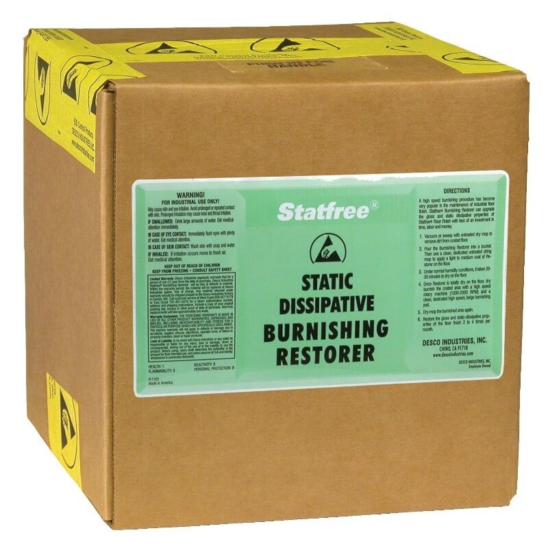Extends ESD floor electrical properties and restores gloss; reduces cost - Statfree® Burnishing Restorer should not be allowed to freeze, product stability may be affected as stated in the Safety Data Sheet.