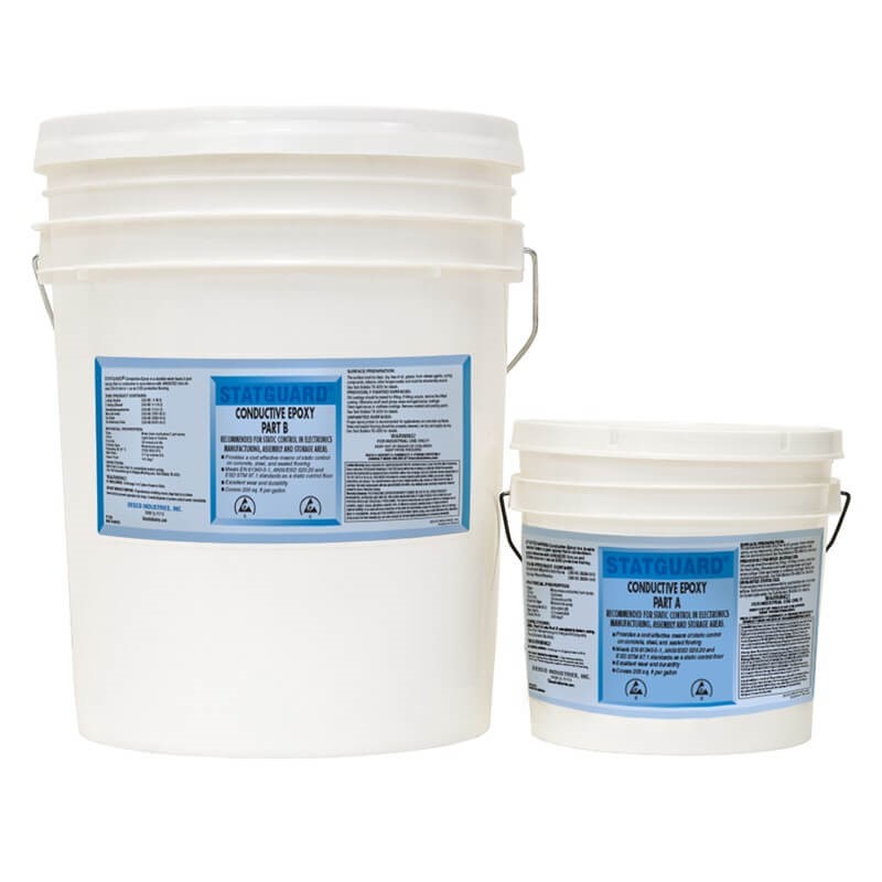 Reduces dry time. Estimated Coverage Per Gallon = 200 sq ft. at 8 mil (0.008" thick). - Statguard® Conductive Epoxy should not be allowed to freeze. If the epoxy part A or part B freezes surround the closed container with hot water to thaw completely and melt the crystals back into liquid. Make sure epoxy is then brought up to room temperature 70°F (20°C) before mixing and using. Store at temperatures above 50 °F (10°C) as stated in the Safety Data Sheet.