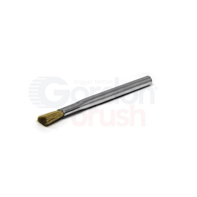 Anti-static hog bristle applicator brush with a zinc-plated steel handle. Constructed with strong mechanical clamping for maximum fiber retention, and contains no adhesives that can leach out and contaminate work areas. An inexpensive utility duster and cleaner that is an excellent replacement for disposable acid brushes that quickly shed fibers. Has a 3/4" trim, a handle length of 4-1/2" x 3/8" diameter. Brush face width is 5/8".