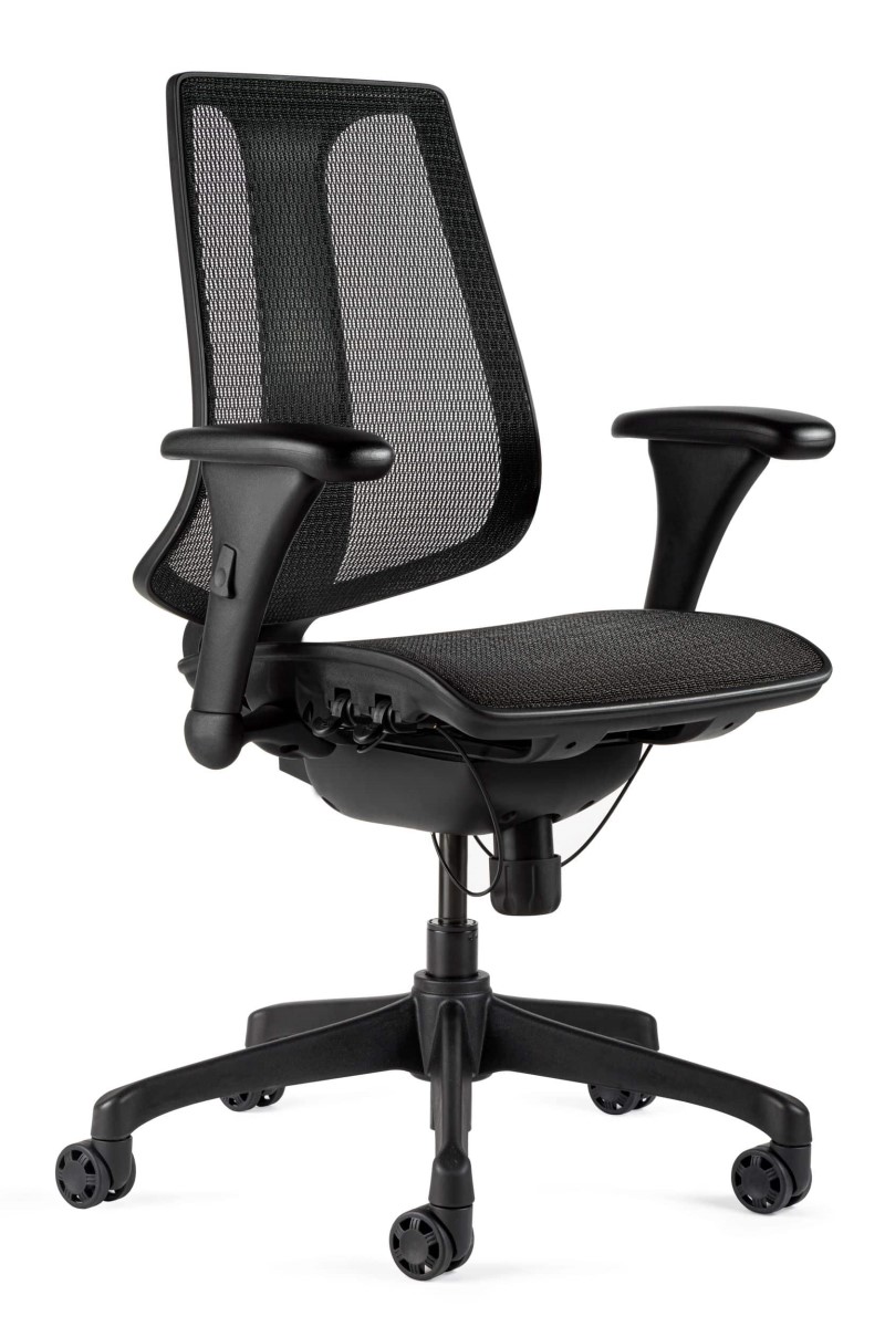 Modern Mesh Chair, Contoured Backrest With Lumbar Support, Seat Slider, Adjustable Arms, Black Nylon Base, All-Purpose Casters, 18.75"-22.25" Seat Height Adj., 275lb Weight Capacity, 5yr Warranty