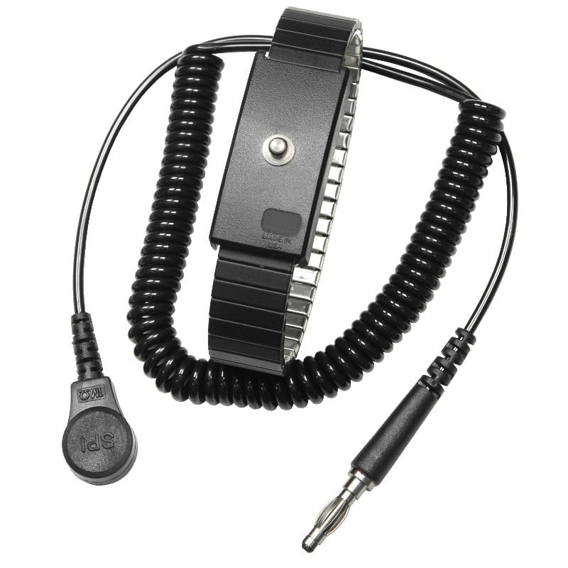 WRIST STRAP, ADJ, XL, METAL, BLACK,4MM SNAP, 12 FT CORD
