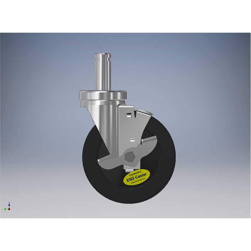 5''x1-1/4'' BLACK ESD WHEEL, SWIVEL CASTER ASSEMBLY W/BRAKE