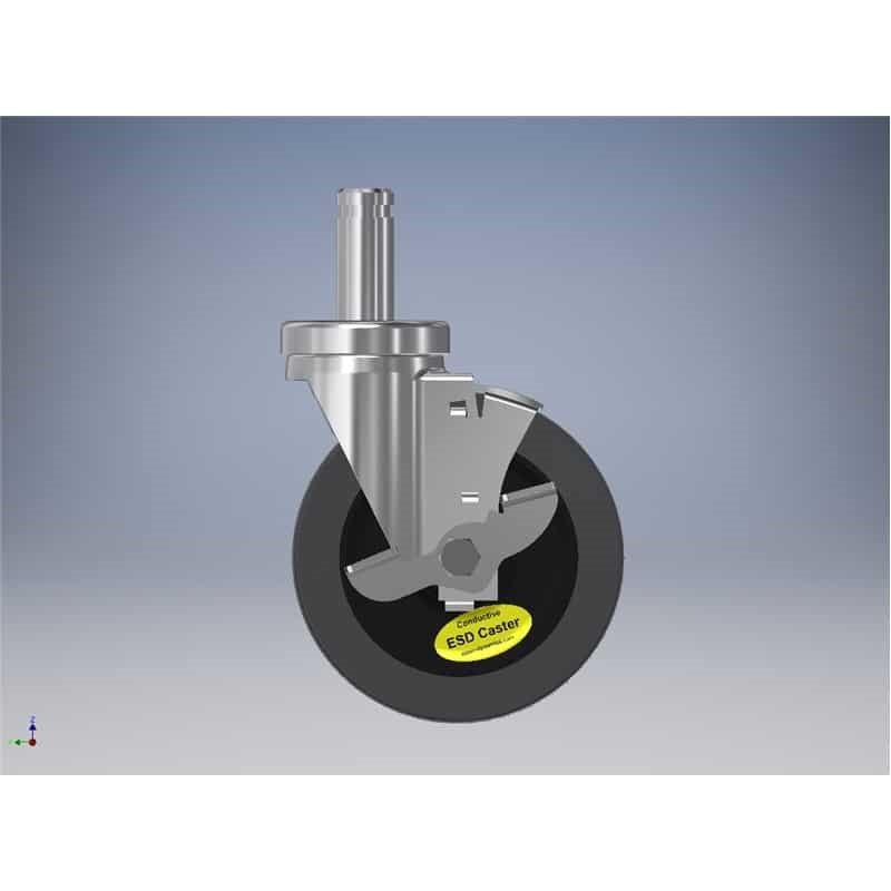 5''x1-1/4'' GRAY ESD WHEEL, SWIVEL CASTER ASSEMBLY, W/BRAKE