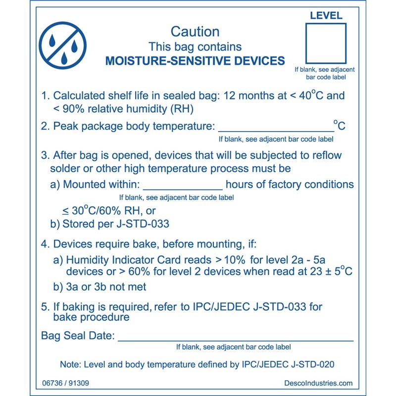 LABEL, MOISTURE BARRIER BAG, IPC/JEDEC J-STD 020, ROLL 100