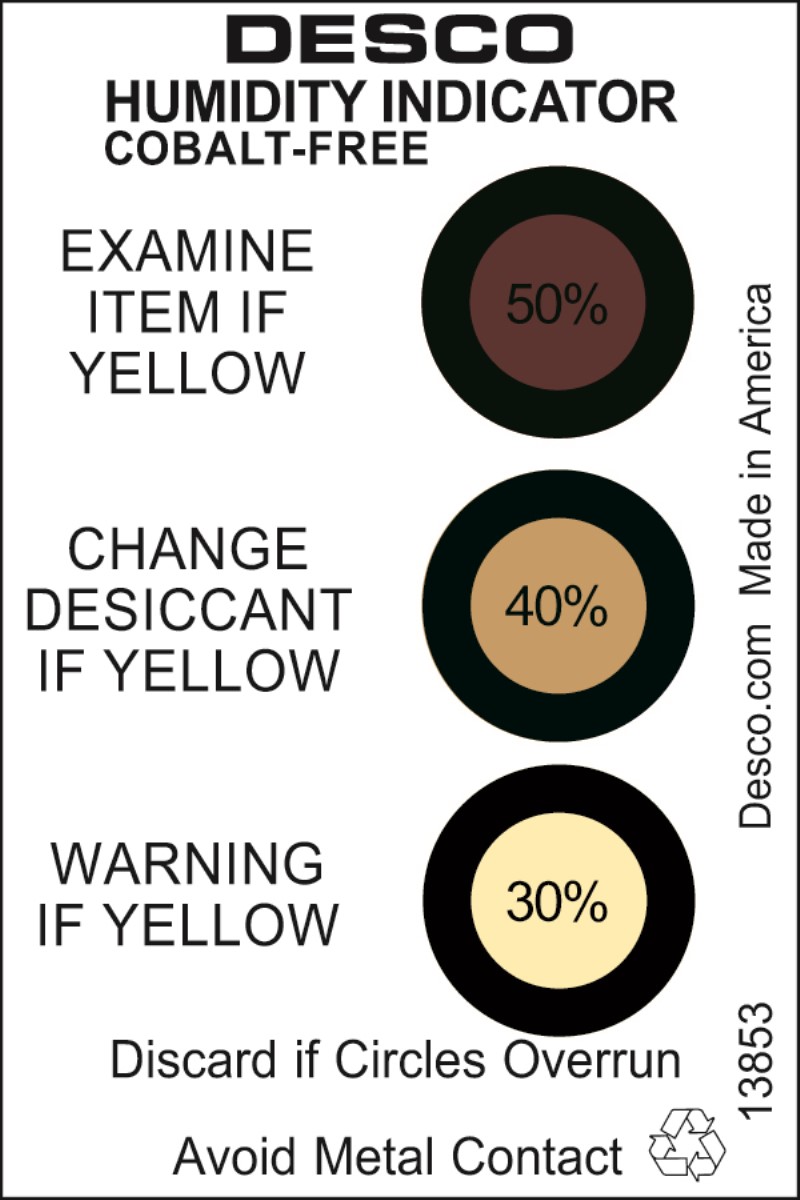 HUMIDITY INDICATOR CARD, COBALT-FREE, 30-40-50%, 125/CAN