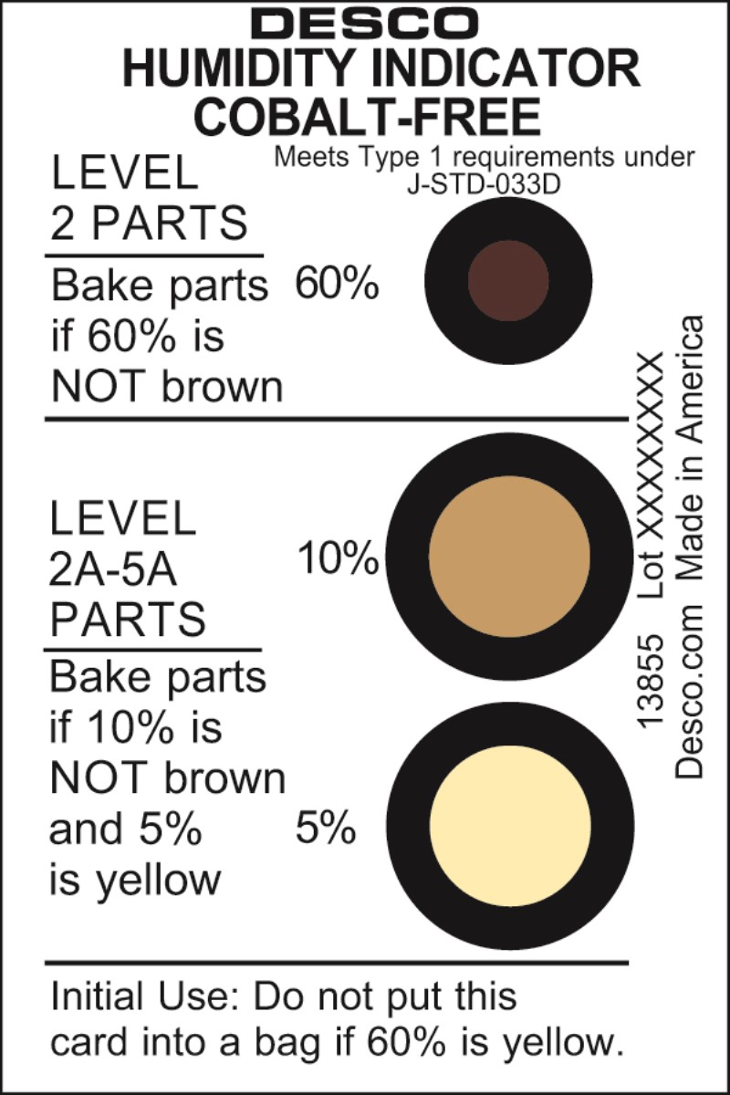HUMIDITY INDICATOR CARD, COBALT-FREE, 5-10-60%, 125/CAN