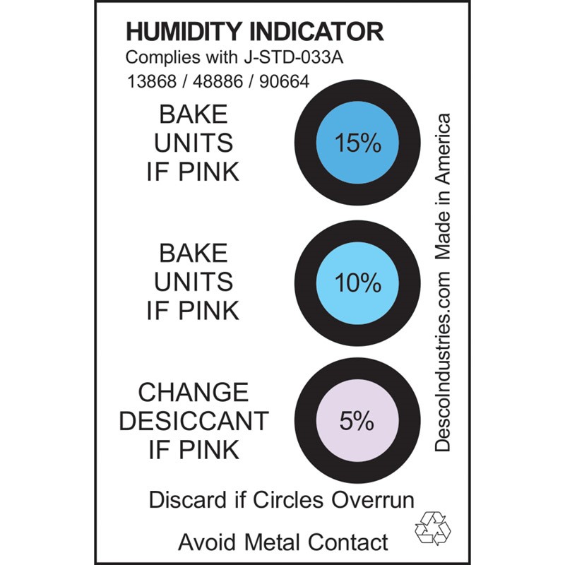 HUMIDITY INDICATOR CARD, 5% 10% 15% RH, J-STD-033D, TYPE 1, 125 EA