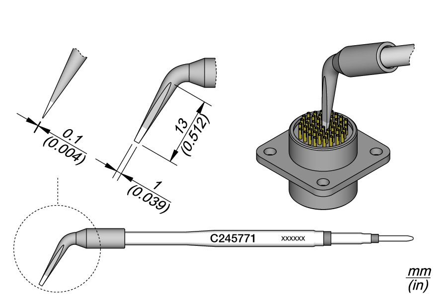 Narrow Chisel Bent Cartridge 1 x 0.1