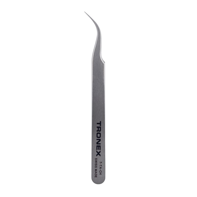 The 7-TA-CH high precision tweezers are suitable for delicate applications which require holding a small component firmly while granting maximum visibility. The Titanium material provides improved performance in more severe environments and greater lightness in handling.